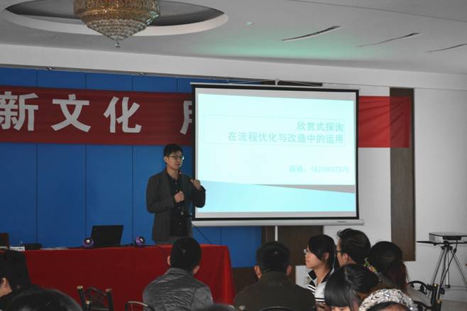 本次活動的主題是“欣賞式探尋”,分別從“發(fā)現(xiàn)、夢想、設(shè)計、實現(xiàn)”四個部分展開?;顒拥男问讲捎帽容^新穎的引導式,而非傳統(tǒng)的講座式,易于在場的聽講人理解與接受。從活動的內(nèi)容上來看,比較貼近我們的日常工作,它能從一個層面跳躍到另一個層面讓我們?nèi)グl(fā)現(xiàn)自己,發(fā)現(xiàn)組織,進而闡述我們所持的夢想和對組織的希望,由此設(shè)計出我們思維當中所希望看到的景象,最終實現(xiàn)我們所匯聚的偉大夢想。