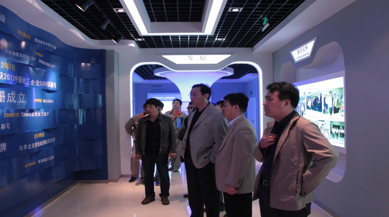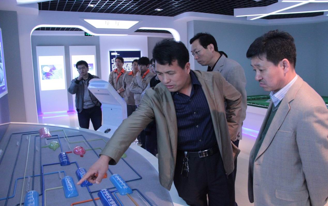 會(huì)議前,雙方一同來(lái)到新啟元展廳,就公司基本情況、現(xiàn)有裝置、人文等方面進(jìn)行介紹,期間,雙方領(lǐng)導(dǎo)還就公司裝置工藝循環(huán)流程展開(kāi)討論。