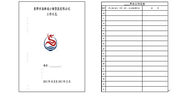 為了更好地推動(dòng)工作,提高工作效率和員工的責(zé)任感,貸款公司開展了員工工作日志制度。使每位員工都能清楚自己今天做了哪些工作,哪些工作還沒有做,自己心里有一個(gè)工作算盤,如何合理安排時(shí)間,去有效落實(shí)工作,把工作干得更好,更出色。公司還規(guī)定每半月亮工作日志、談感悟。同時(shí)通過工作日志,也能具體掌握全體員工的工作概況,對(duì)工作中的得與失,起到很好的檢驗(yàn)和總結(jié)作用。