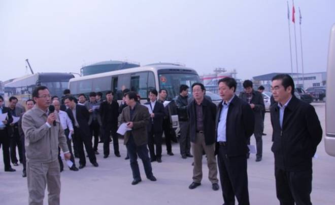 2013年10月31日,渤海新區(qū)黨工委書記丁繡峰一行蒞臨新啟元督導(dǎo)觀摩蒽油加氫項(xiàng)目建設(shè),集團(tuán)總經(jīng)理于國臣等領(lǐng)導(dǎo)在綜合樓前進(jìn)行接待。