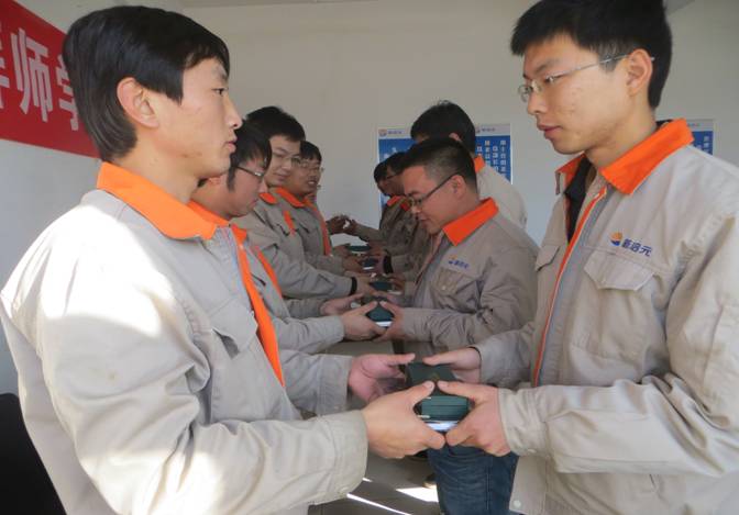 在現場,七對師徒在簽訂“師徒協(xié)議”后,由徒弟向師傅奉茶,師傅贈與徒弟學習用品以勉勵。接著,師徒代表分別發(fā)言,徒弟表示,一定本著“誠心、精心、細心、耐心”的態(tài)度虛心求學,通過學習,使自己盡快成長為一名合格的外操。師傅表示會認真履行“師傅領進門”的職責,對徒弟傾囊相授,同時也希望每一位徒弟都能“青出于藍而勝于藍”。