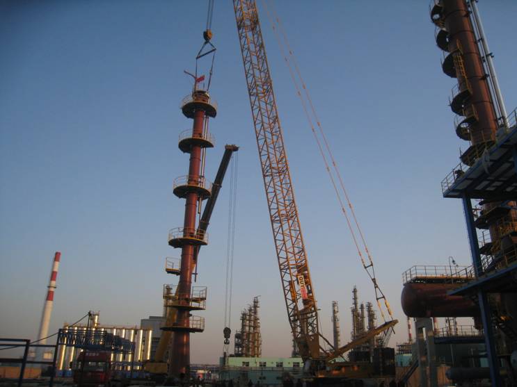 中午12:08隨著鞭炮響起,四座塔的吊裝正式開(kāi)始。至下午17:00脫異丁烷塔、脫正丁烷塔雙塔正式安裝完成,12月30日脫輕烴塔、水洗塔安裝完畢。