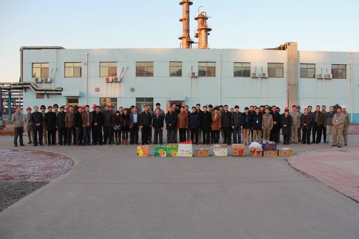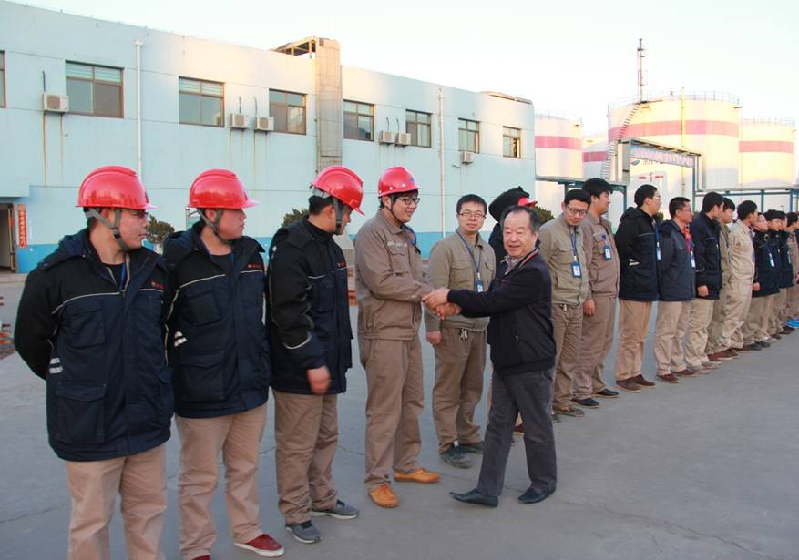 除夕下午五點,中捷石化集團(tuán)董事長王振華帶領(lǐng)集團(tuán)領(lǐng)導(dǎo)班子來到新啟元公司,向節(jié)日里仍然堅守在工作崗位上的伙伴們送去新年祝福。