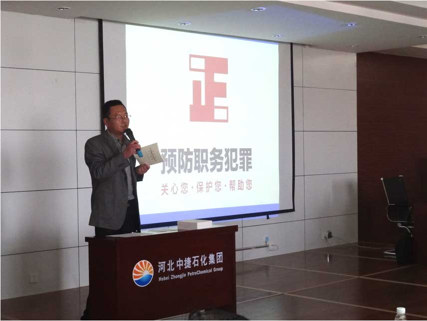黃驊市檢察院唐科長受邀在會上為參會人員普及“反腐倡廉”知識。唐科長結合國家近兩年的反腐倡廉形勢,肅清貪污腐敗的典型案例,向參會人員講授了貪污腐敗行為對企業(yè)、家庭、個人帶來的嚴重后果,并詳細闡述了職務犯罪的種類及特點,對于概念模糊的貪污受賄行為做了法律上的明確界定與說明。最后,集團公司黨委書記劉國新為此次講座做了總結性講話,講話中,他要求各單位做好“反腐倡廉”工作,為個人負責,為企業(yè)負責。