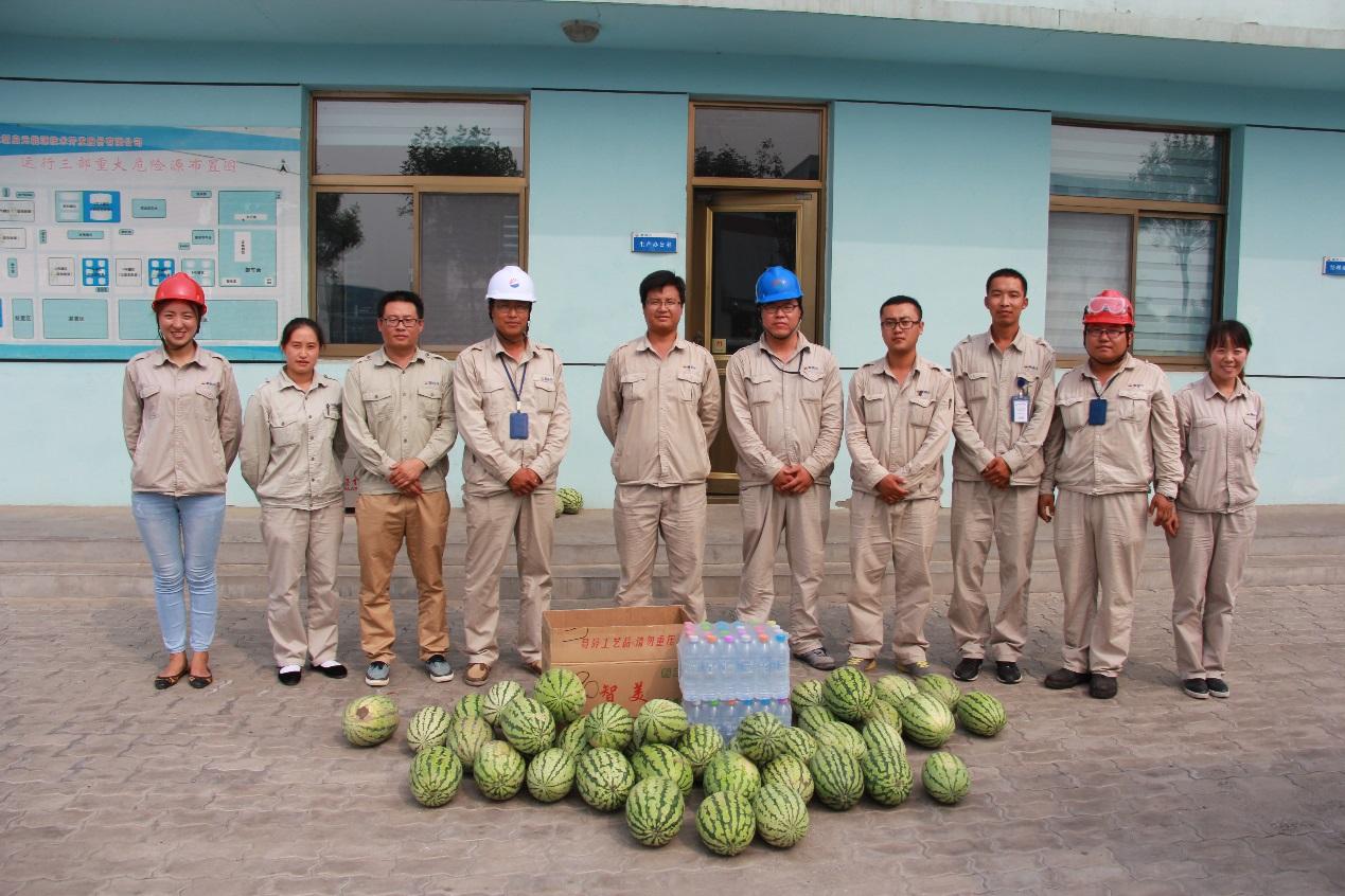公司工會深入基層進(jìn)行慰問,為一線員工及施工隊(duì)伍送去西瓜、礦泉水等消暑食品,使堅(jiān)守在檢修現(xiàn)場的員工清涼度過炎炎夏日。