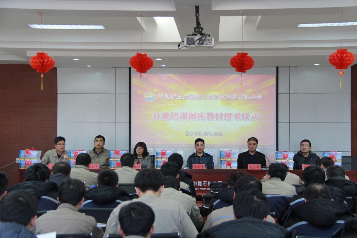 1月8日上午,新啟元公司在科研樓六樓會議室舉行技能培訓(xùn)題庫教材授書儀式,新啟元總經(jīng)理喬樹華等公司領(lǐng)導(dǎo),天津煉化通公司老師張紅頻、楊繼文,各部門經(jīng)理及員工代表出席會議。會上,公司領(lǐng)導(dǎo)向各部門經(jīng)理頒發(fā)了由新啟元公司組織編纂的10個工種的初、中級工技能培訓(xùn)題庫教材。