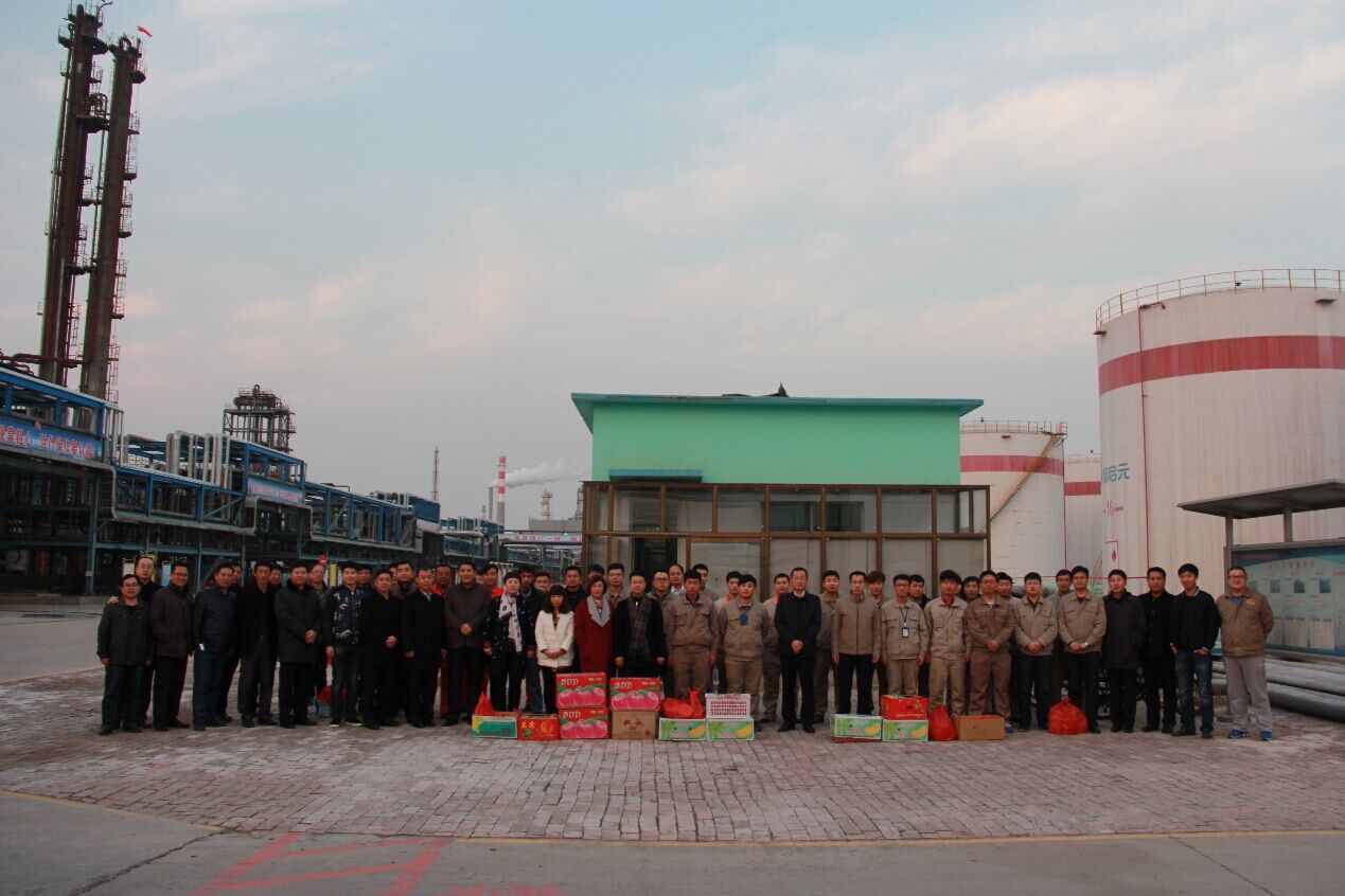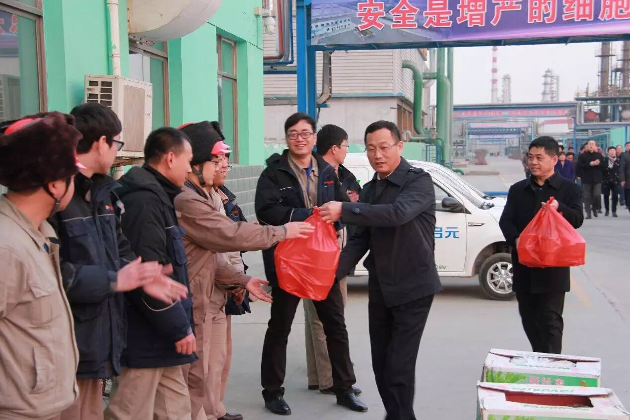 集團(tuán)公司領(lǐng)導(dǎo)一行先后來(lái)到捷馨建材公司地?zé)岜谜?、華辰加油站、新欣園、新啟元公司為值守人員送去水果、餃子等慰問(wèn)品,并送上新春祝福。