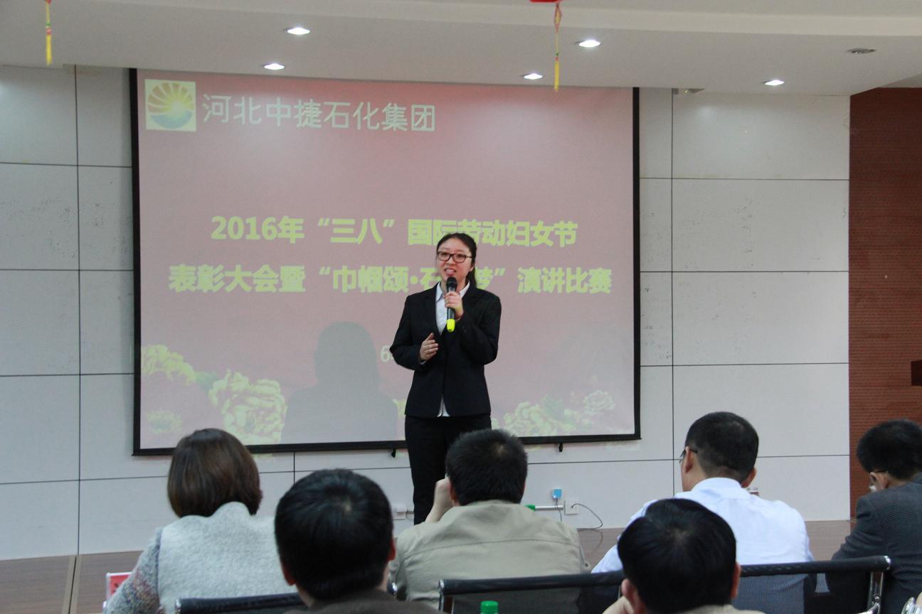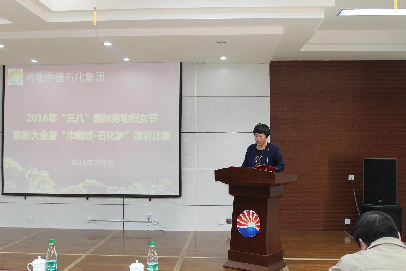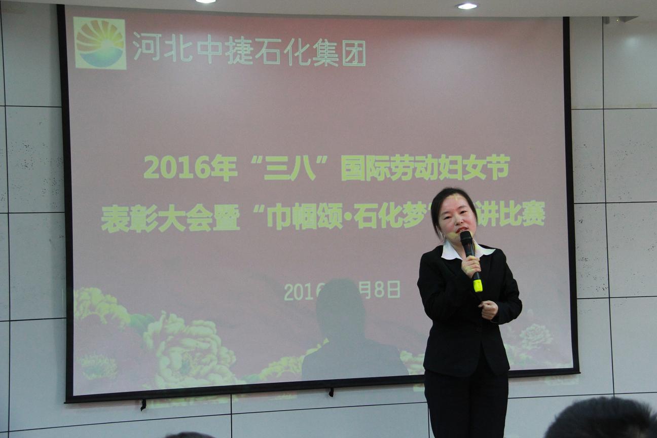 3月8日,是國(guó)際勞動(dòng)?jì)D女節(jié),為了讓公司的女工度過一個(gè)輕松快樂的“三?八”婦女節(jié),同時(shí)表彰先進(jìn)女工,河北中捷石化集團(tuán)2016年“三八”婦女節(jié)表彰大會(huì)暨“巾幗頌?石化夢(mèng)”演講比賽于3月8日下午隆重舉行,集團(tuán)公司及各所屬單位領(lǐng)導(dǎo)、嘉賓評(píng)委、員工代表共計(jì)70余人參加了此次會(huì)議。