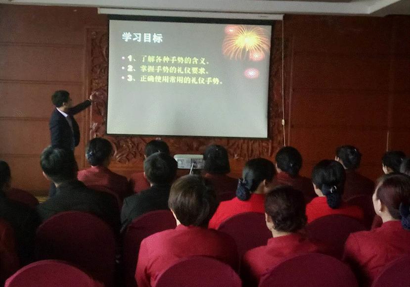 二、實(shí)操訓(xùn)練。餐飲部部長(zhǎng)及主管親自示范各種規(guī)則,包括個(gè)人衛(wèi)生及儀容儀表;托盤(pán)(長(zhǎng)托盤(pán)、圓托盤(pán));口布折花(疊、折、卷、穿、翻、拉、捏);中式擺臺(tái)(零餐擺臺(tái));酒水服務(wù)(中國(guó)白酒服務(wù)、紅葡萄酒服務(wù)、白葡萄酒服務(wù)、啤酒服務(wù))。經(jīng)過(guò)培訓(xùn),很多員工都能夠自行整理自已的儀表、著裝,符合酒店規(guī)范;并對(duì)各種專(zhuān)業(yè)知識(shí)有了更深入的了解。此次培訓(xùn)對(duì)員工起到了自我檢查、約束的效果,比起日常質(zhì)檢發(fā)現(xiàn)后要求他們整改的效果要好很多。