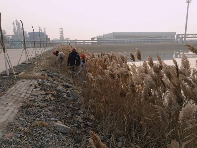 細(xì)問之下了解到,原來是運(yùn)行六部的尾氣硫酸銨二班、水廠二班、污水二班的員工們看到景觀湖周圍干枯的蘆葦影響了公司整體環(huán)境的美觀,同時(shí)面臨氣候干燥的冬季容易成為火災(zāi)隱患。為此,班長(zhǎng)們主動(dòng)溝通交流,利用休班時(shí)間自動(dòng)自發(fā)的對(duì)景觀湖蘆葦進(jìn)行清理。