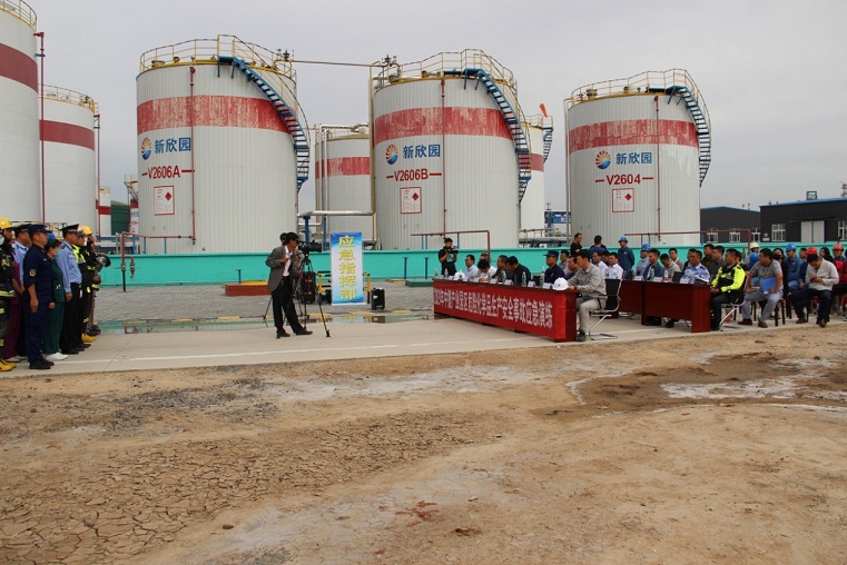 為提高園區(qū)應(yīng)急管理水平,檢驗企業(yè)應(yīng)急處置能力,評估完善企業(yè)和政府部門之間的應(yīng)急救援力量協(xié)同能力,9月19日上午,園區(qū)安委辦組織相關(guān)部門與新欣園公司共同開展2019年度全區(qū)危險化學品生產(chǎn)安全事故應(yīng)急救援演練。園區(qū)領(lǐng)導于長池、李鐘甜,新欣園公司總經(jīng)理王政、安全總監(jiān)李冬峰及相關(guān)政府部門代表出席活動,活動邀請中海油中捷石化、新啟元公司等10家?;髽I(yè)代表觀摩學習了此次演練活動。