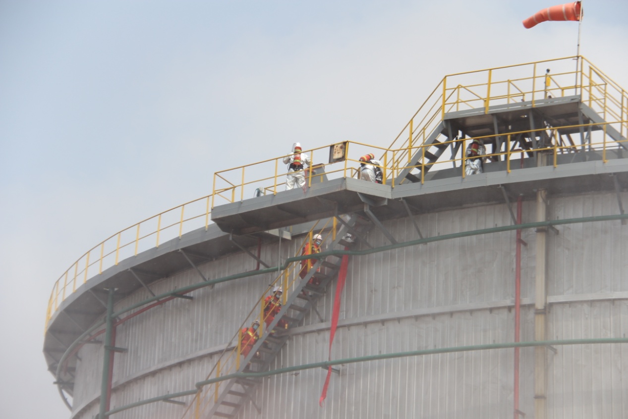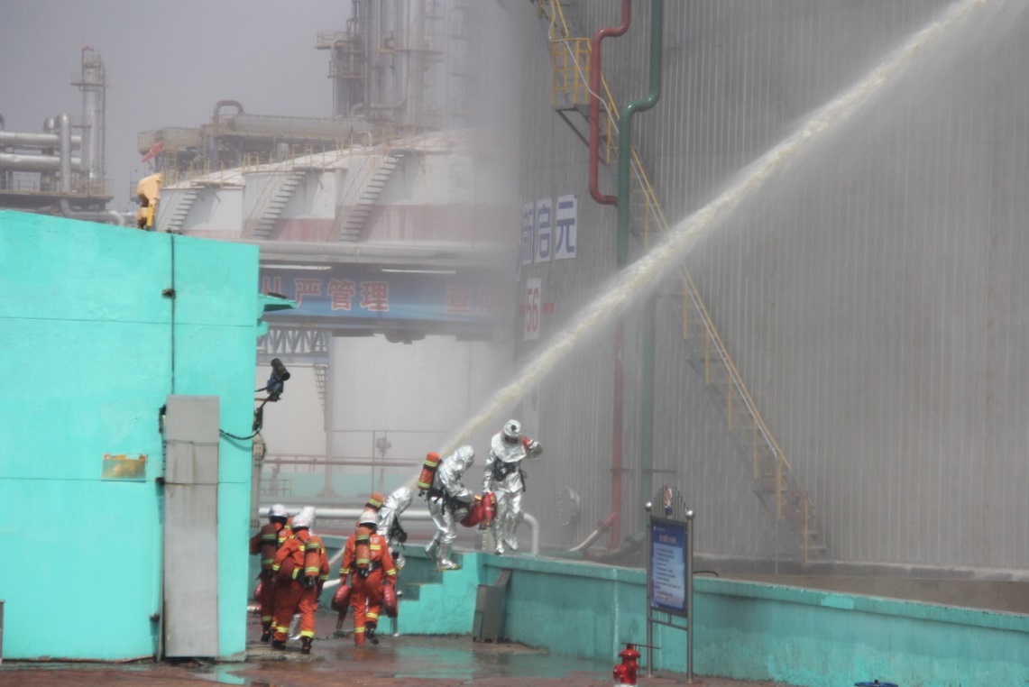 上午10:00,現(xiàn)場總指揮拉響警報后,演練準(zhǔn)時開始。情景模擬儲罐因雷擊出現(xiàn)密封圈點式火災(zāi),并引發(fā)泄漏著火事故,因企業(yè)自身應(yīng)急救援力量不能及時控制火勢,情況緊急擴(kuò)大響應(yīng),中捷產(chǎn)業(yè)園區(qū)啟動應(yīng)急救援預(yù)案,調(diào)集政府消防隊、周邊企業(yè)消防隊、120救護(hù)車進(jìn)行緊急救援,各救援隊伍立即投入到救援行動中,最終將傷員救出,火災(zāi)得到控制。通過此次演練,檢驗了園區(qū)危險化學(xué)品應(yīng)急預(yù)案的科學(xué)性和實用性,進(jìn)一步提高了企業(yè)面對突發(fā)事件的應(yīng)急處理能力和協(xié)調(diào)作戰(zhàn)能力,以及?;坊馂?zāi)事故應(yīng)急管理救援水平,進(jìn)一步提升了應(yīng)急救援體系和應(yīng)急預(yù)案的可行性、緊密性、可靠性。