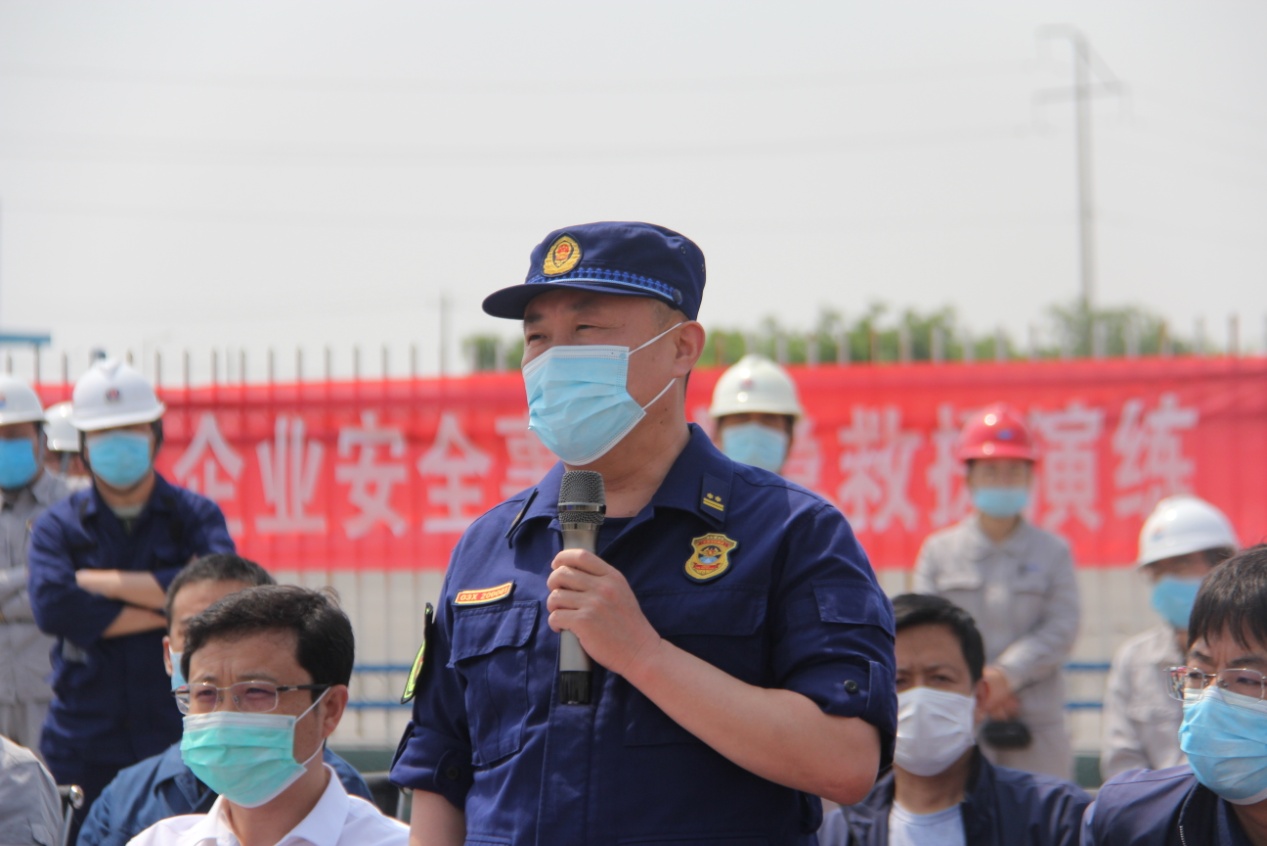 王偉支隊長對此次演練進(jìn)行點評。他指出:此次應(yīng)急演練非常具有針對性,各參演單位精心組織、周密安排、密切配合,達(dá)到了預(yù)期效果。此次演練是深入貫徹落實習(xí)近平總書記對安全生產(chǎn)工作的重要指示精神,促進(jìn)了政府消防隊伍與企業(yè)消防隊伍之間協(xié)同作戰(zhàn)能力及水平的大幅提升。今后,我們要把功夫下在平時,提升救援隊伍的精神面貌,強(qiáng)化應(yīng)急救援專業(yè)訓(xùn)練,針對突發(fā)事件應(yīng)急救援工作面臨的新形勢、新情況,崗位練兵和聯(lián)合實戰(zhàn)要相結(jié)合,做到磨練隊伍、總結(jié)經(jīng)驗、提升能力,一旦發(fā)生事故,確保能夠快速響應(yīng),科學(xué)救援,將人員傷亡和財產(chǎn)損失降到最小。同時針對演練中暴露出的問題要認(rèn)真總結(jié),加以改進(jìn),確保演練效果真正落到實處。