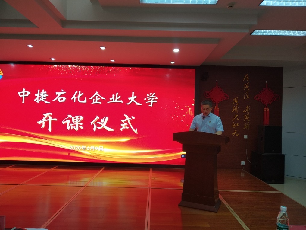 集團(tuán)總經(jīng)理喬樹華為中捷石化企業(yè)大學(xué)開課儀式作重要講話。喬總首先代表集團(tuán)公司全體人員向合作伙伴——格局商學(xué)院及諸位老師表示真摯的感謝,并預(yù)祝雙方的合作更加愉快,祝愿彼此在攜手共進(jìn)的道路上一起成長。