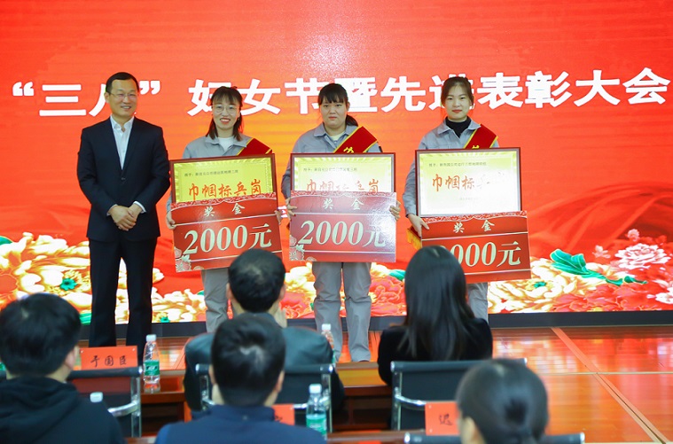 集團(tuán)副總經(jīng)理張鵬為先進(jìn)女工頒獎(jiǎng)