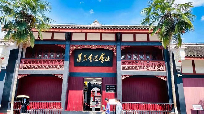 駐足遵義會議紀(jì)念館,首先映入大家眼簾的是紀(jì)念館門前大門正上方掛著的一塊黑漆金匾,上面有毛主席親自題寫的“遵義會議會址”6個(gè)金光閃閃的大字,字跡飄逸豪放。遵義會議紀(jì)念館的展廳內(nèi)展示了大量文物、珍貴歷史圖片、文獻(xiàn)資料等,生動地再現(xiàn)了紅軍長征的歷程。“長征精神誨育千秋,遵義會議永放光芒。”遵義會議集中體現(xiàn)了堅(jiān)定信念、實(shí)事求是、獨(dú)立自主、敢創(chuàng)新路、民主團(tuán)結(jié)的精神。
