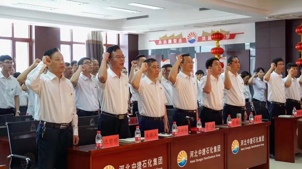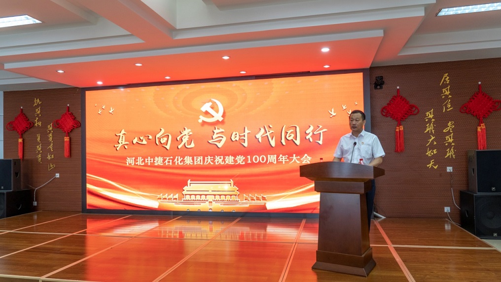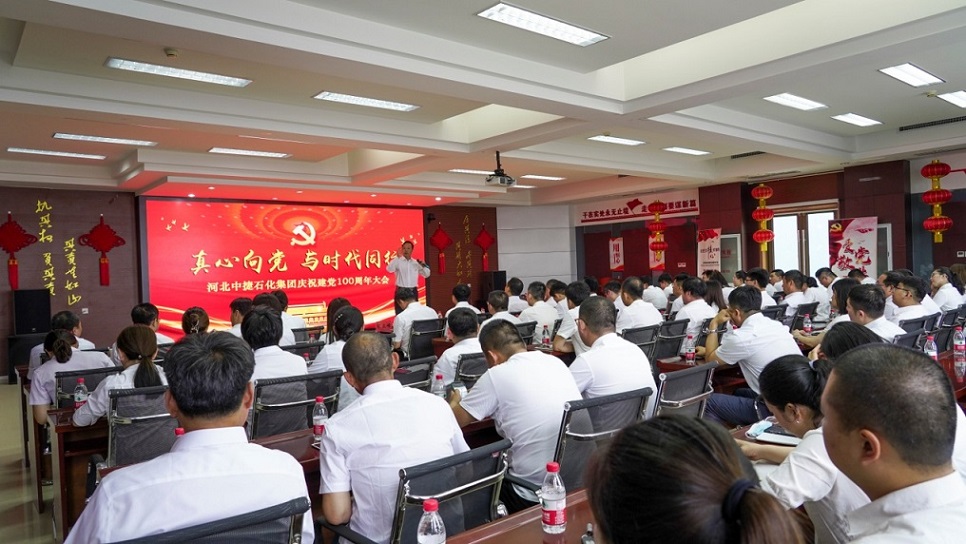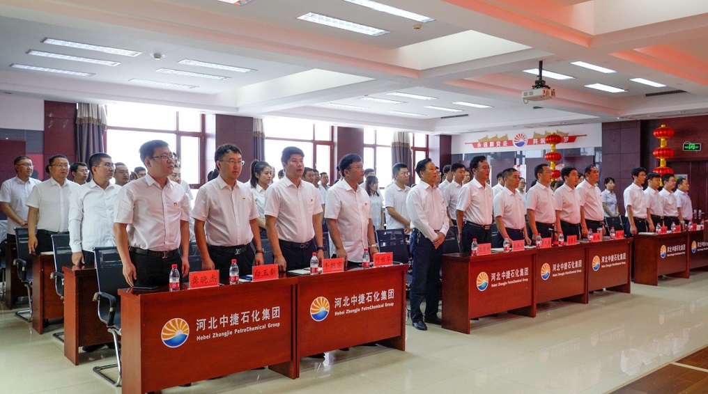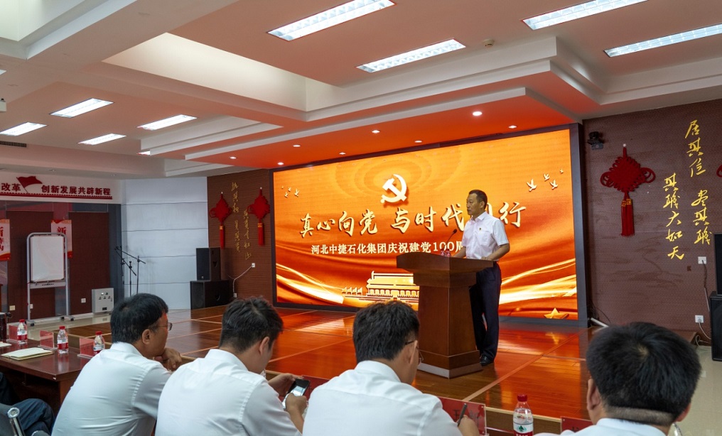 集團公司訊 為熱烈慶祝中國共產黨成立100周年,進一步激發(fā)基層黨組織活力,增強黨員干部的光榮感、使命感,大力營造積極向上的氛圍,弘揚正氣。同時,結合上級黨委關于黨史學習教育的要求部署和《關于在集團開展黨史學習教育的實施意見》,為把學習習近平新時代中國特色社會主義思想貫穿始終,把學史明理、學史增信、學史崇德、學史力行貫穿始終,把學黨史、悟思想、辦實事、開新局貫穿始終,進一步勉勵廣大黨員不忘初心,牢記使命,繼承和發(fā)揚黨的優(yōu)良傳統(tǒng),推動集團各項事業(yè)持續(xù)、穩(wěn)定、創(chuàng)新、發(fā)展,6月28日,河北中捷石化集團黨委組織召開了慶祝建黨100周年大會。原中捷企業(yè)黨工委書記沈學明同志,集團黨委書記于國臣同志,集團黨委副書記、總經理喬樹華同志,以及各所屬黨支部書記,各支部黨員代表共計70余人參加了此次活動。