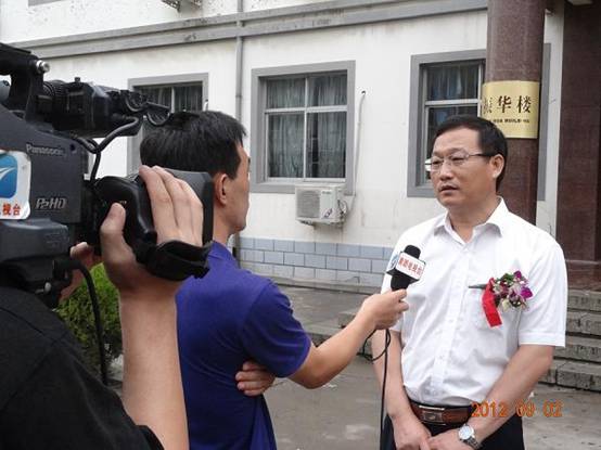 慶典結(jié)束后,黃驊中學(xué)為校址內(nèi)一所命名為“振華樓”的教學(xué)樓進行了揭牌儀式,揭牌儀式結(jié)束現(xiàn)場,于總接受了黃驊電視臺記者的采訪。