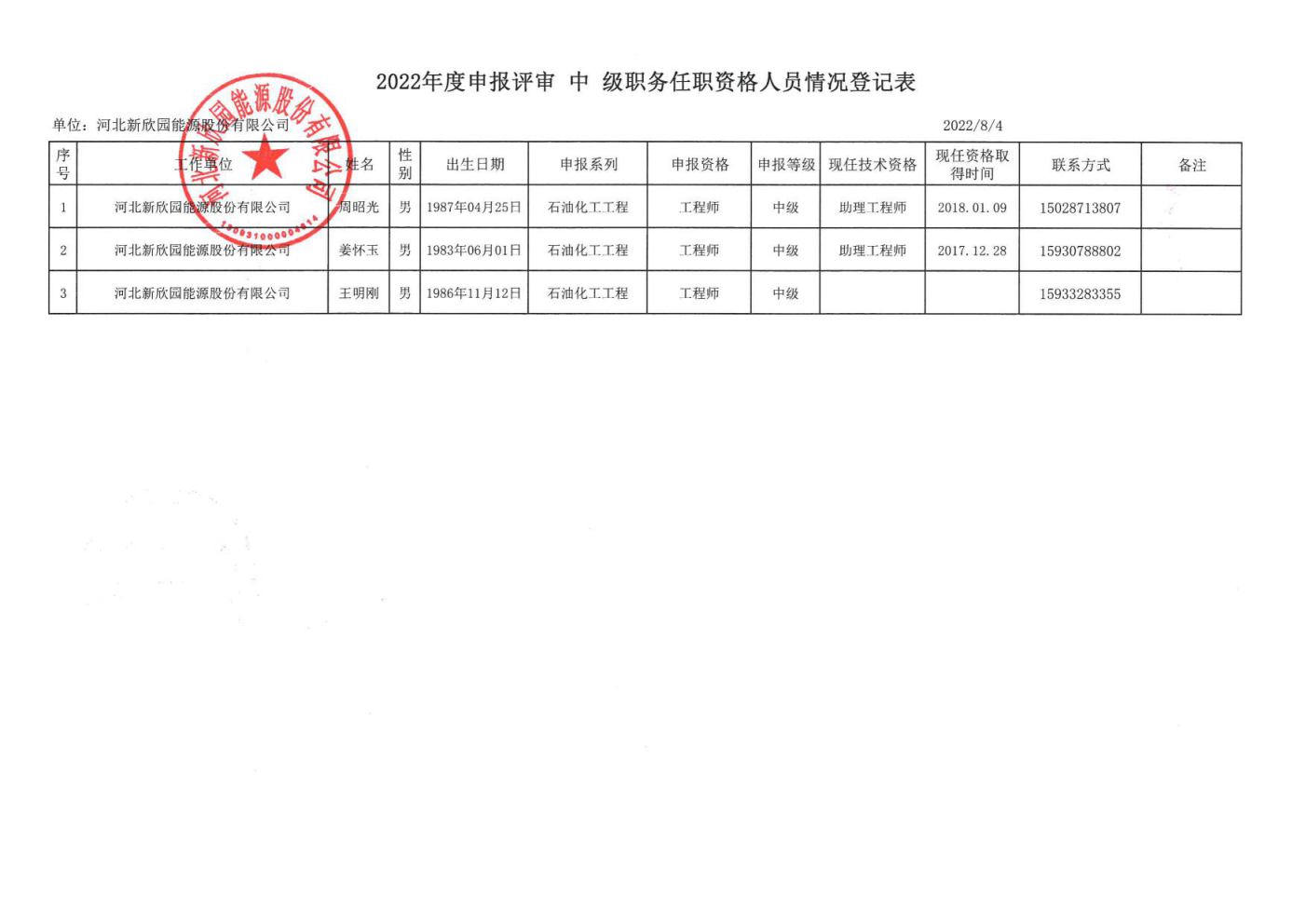 2022年河北新欣園申報(bào)中級(jí)職稱人員信息公示