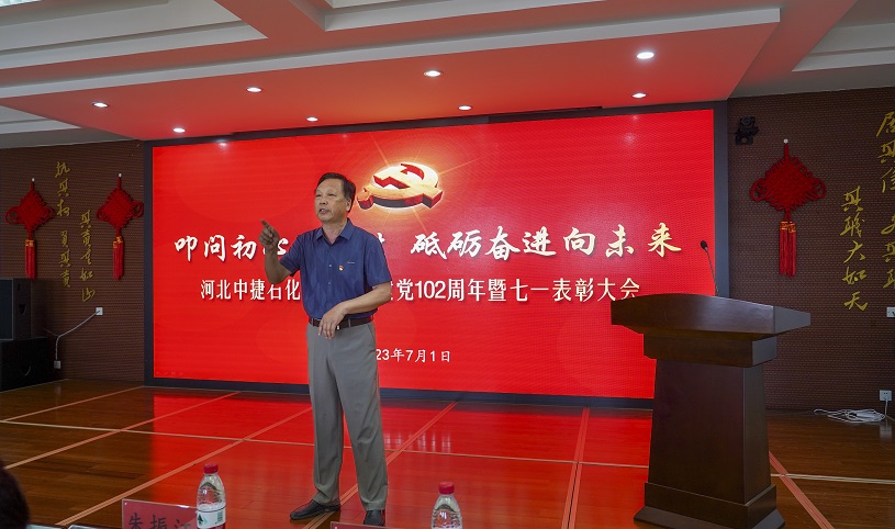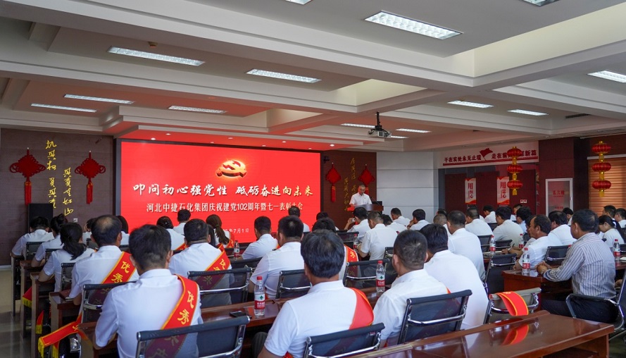 集團(tuán)公司訊 為隆重紀(jì)念中國(guó)共產(chǎn)黨成立102周年,深入開展學(xué)習(xí)貫徹習(xí)近平新時(shí)代中國(guó)特色社會(huì)主義思想主題教育,激勵(lì)各基層黨組織和黨員充分發(fā)揮戰(zhàn)斗堡壘作用和先鋒模范作用,同時(shí)為弘揚(yáng)先進(jìn)典型,彰顯榜樣力量,不斷增強(qiáng)基層黨組織的創(chuàng)造力、凝聚力、戰(zhàn)斗力,7月1日,河北中捷石化集團(tuán)黨委組織召開了慶祝建黨102周年暨“七一”表彰大會(huì)。中捷產(chǎn)業(yè)園區(qū)組織人事部副部長(zhǎng)、非公有制經(jīng)濟(jì)和社會(huì)組織黨委書記邵澤慶同志,原中捷企業(yè)黨工委書記沈?qū)W明同志,集團(tuán)黨委副書記、總經(jīng)理喬樹華同志,集團(tuán)黨委副書記、紀(jì)委書記朱振江同志以及各所屬黨(總)支部書記,各支部黨員代表共計(jì)60余人參加了此次活動(dòng)。