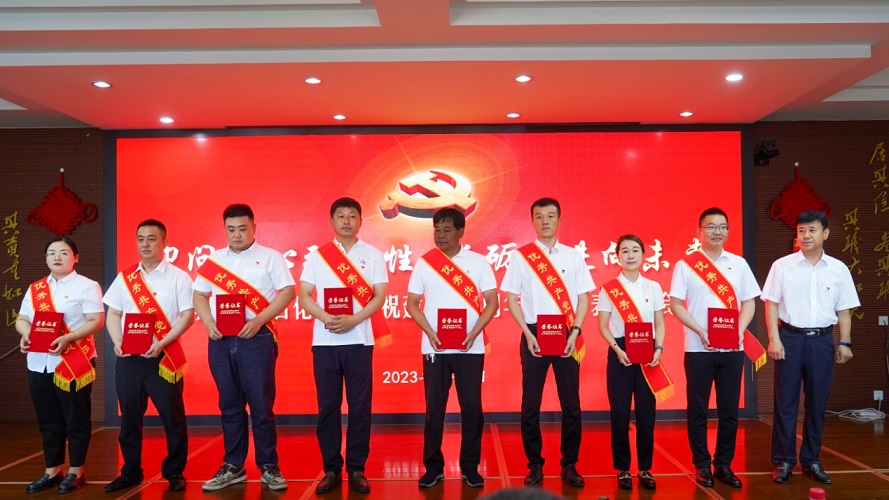 中捷產(chǎn)業(yè)園區(qū)組織人事部副部長(zhǎng)、非公有制經(jīng)濟(jì)和社會(huì)組織黨委書記邵澤慶同志,集團(tuán)黨委副書記、總經(jīng)理喬樹華同志,集團(tuán)黨委副書記、紀(jì)委書記朱振江同志,集團(tuán)黨委委員、副總經(jīng)理張鵬同志,集團(tuán)黨委委員、新啟元黨總支部書記李志剛同志為2022-2023年度先進(jìn)基層黨組織書記、先進(jìn)基層黨組織、優(yōu)秀黨務(wù)工作者、優(yōu)秀共產(chǎn)黨員進(jìn)行頒獎(jiǎng)。