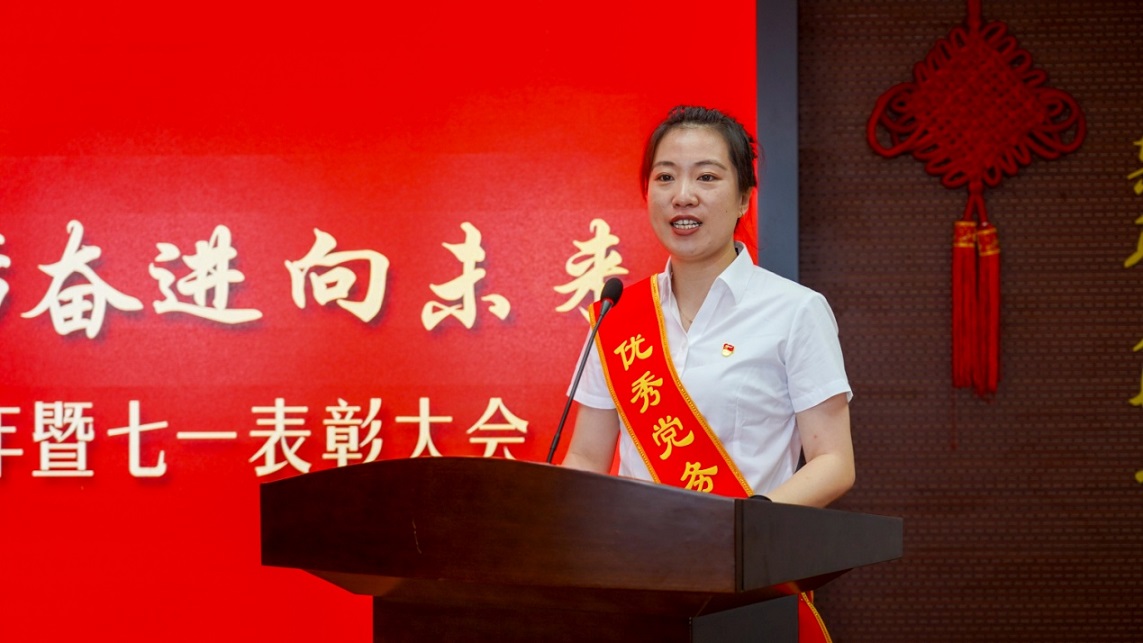 優(yōu)秀共產(chǎn)黨員代表、優(yōu)秀黨務(wù)工作者代表、先進(jìn)基層黨組織代表依次上臺(tái)發(fā)言。