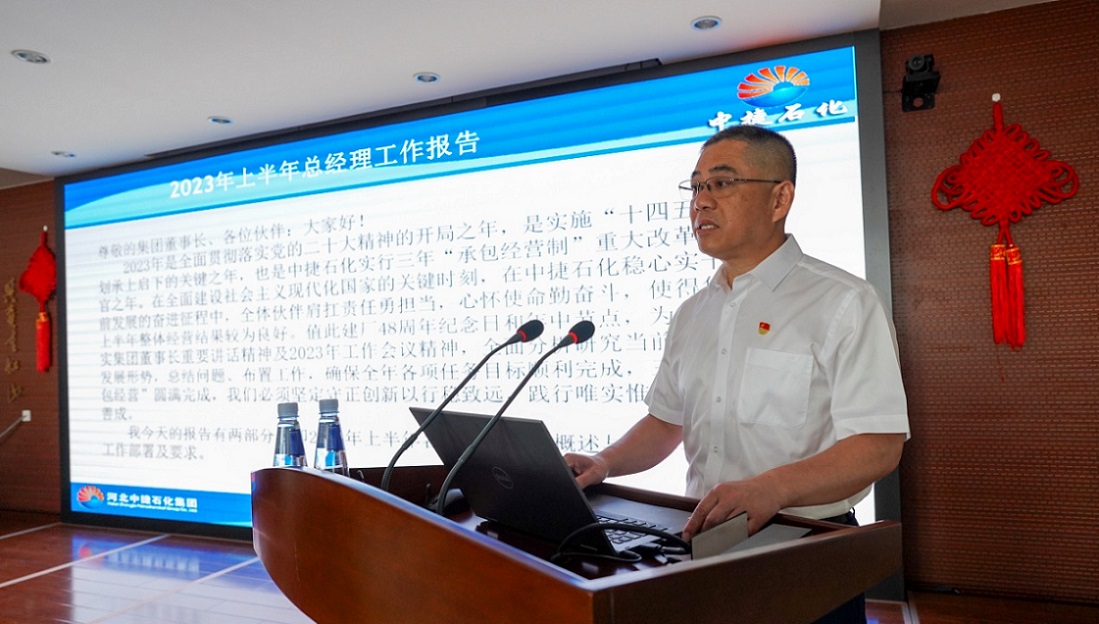 集團公司訊  7月16日上午,河北中捷石化集團2023年上半年工作會議在新啟元科研樓六樓會議室召開,集團公司董事長王振華,黨委書記于國臣,總經(jīng)理喬樹華,以及集團公司各主管領(lǐng)導(dǎo),各所屬單位管理人員共計70余人參加了此次會議。會議由集團黨委書記于國臣主持。