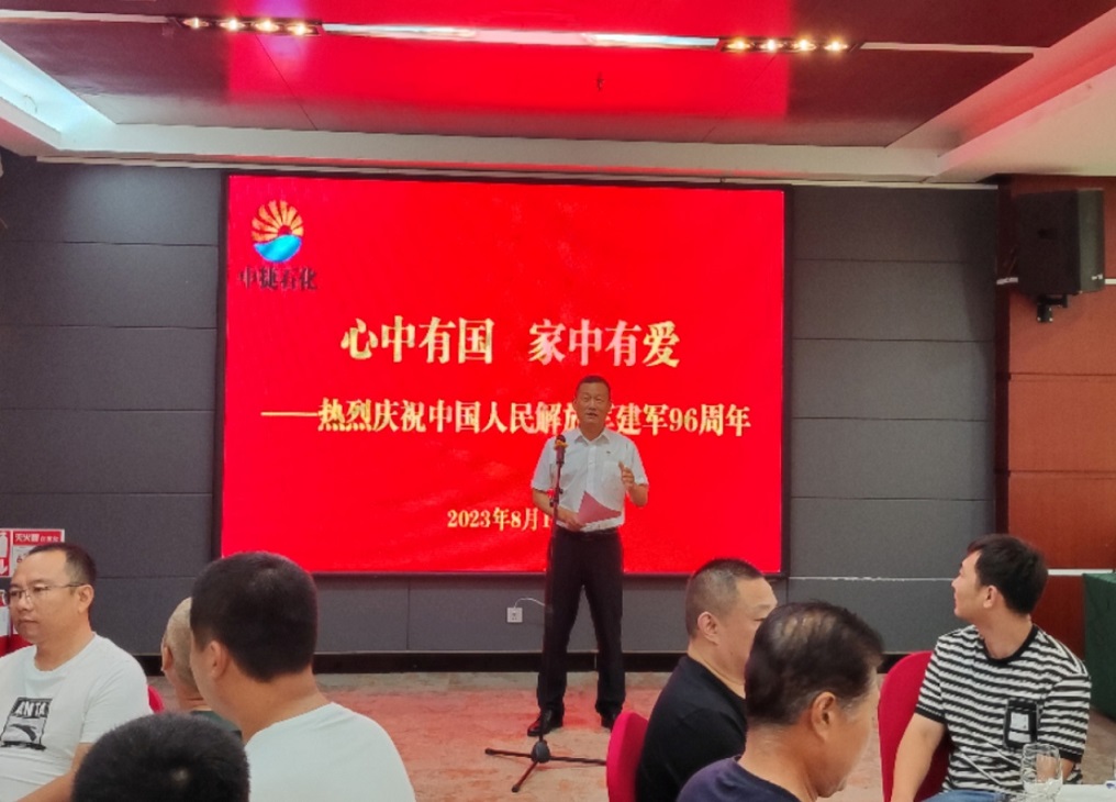 集團公司訊 為慶祝中國人民解放軍建軍96周年,謳歌人民解放軍對偉大祖國和人民做出的豐功偉績,頌揚人民解放軍為保衛(wèi)祖國用血肉筑起的鋼鐵長城,繼承人民解放軍無私奉獻和忠誠擔(dān)當(dāng)?shù)膬?yōu)良作風(fēng)和革命精神,團結(jié)廣大職工立足新時代、競技新賽道、邁步新征程,開拓創(chuàng)新,扎實工作,8月1日,集團黨委組織開展了“心中有國 家中有愛——熱烈慶祝中國人民解放軍建軍96周年”集團2023年慶“八一”建軍節(jié)活動。集團董事長王振華,黨委書記于國臣,總經(jīng)理喬樹華,以及各黨(總)支部書記、各所屬單位退伍軍人共計40人參加了此次活動。