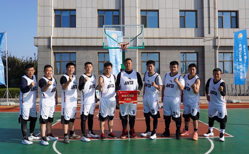 集團(tuán)財(cái)務(wù)總監(jiān)宋立峰、新啟元公司董事長(zhǎng)李志剛為籃球賽開球