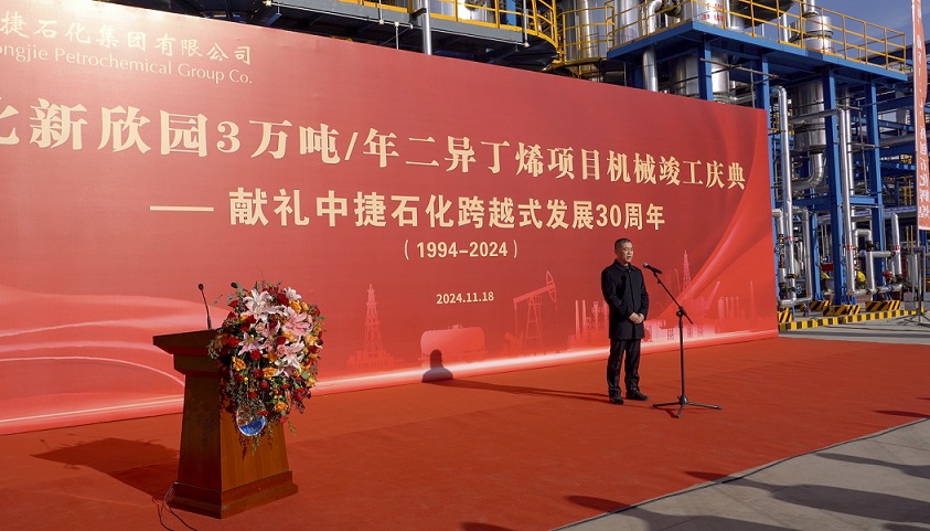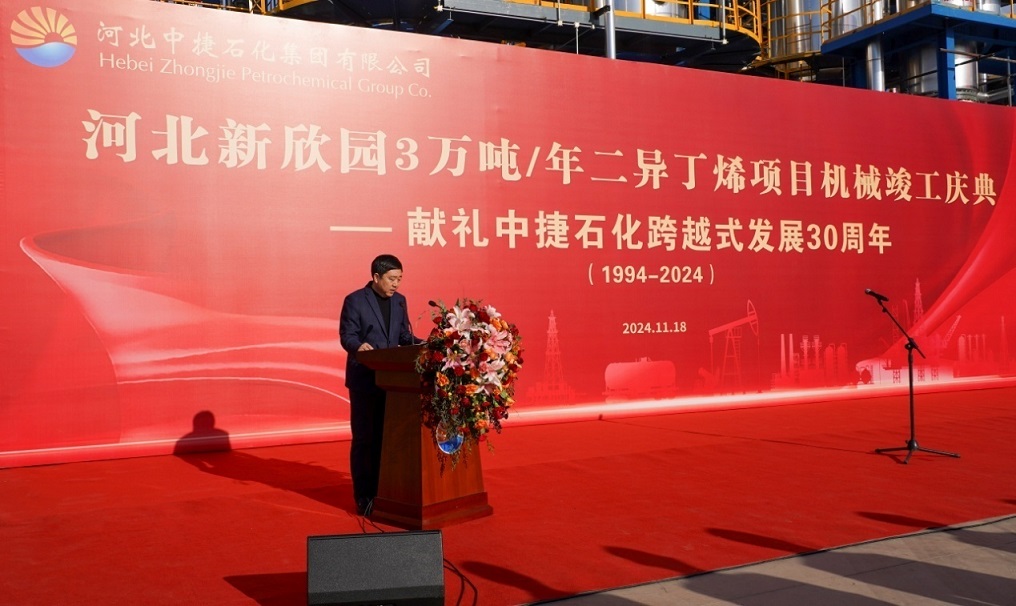 集團(tuán)公司訊 11月18日上午,河北中捷石化集團(tuán)組織舉辦“獻(xiàn)禮中捷石化跨越式發(fā)展30周年”——3萬(wàn)噸/年二異丁烯項(xiàng)目機(jī)械竣工慶典。集團(tuán)董事長(zhǎng)王振華、集團(tuán)黨委書記于國(guó)臣、集團(tuán)總經(jīng)理喬樹(shù)華,以及集團(tuán)公司領(lǐng)導(dǎo),各所屬單位副總級(jí)以上管理人員、財(cái)務(wù)經(jīng)理、員工代表,參建方項(xiàng)目代表、工人代表等共計(jì)100余人參加。活動(dòng)由集團(tuán)副總經(jīng)理張鵬主持。