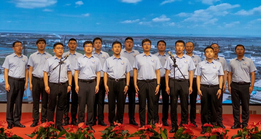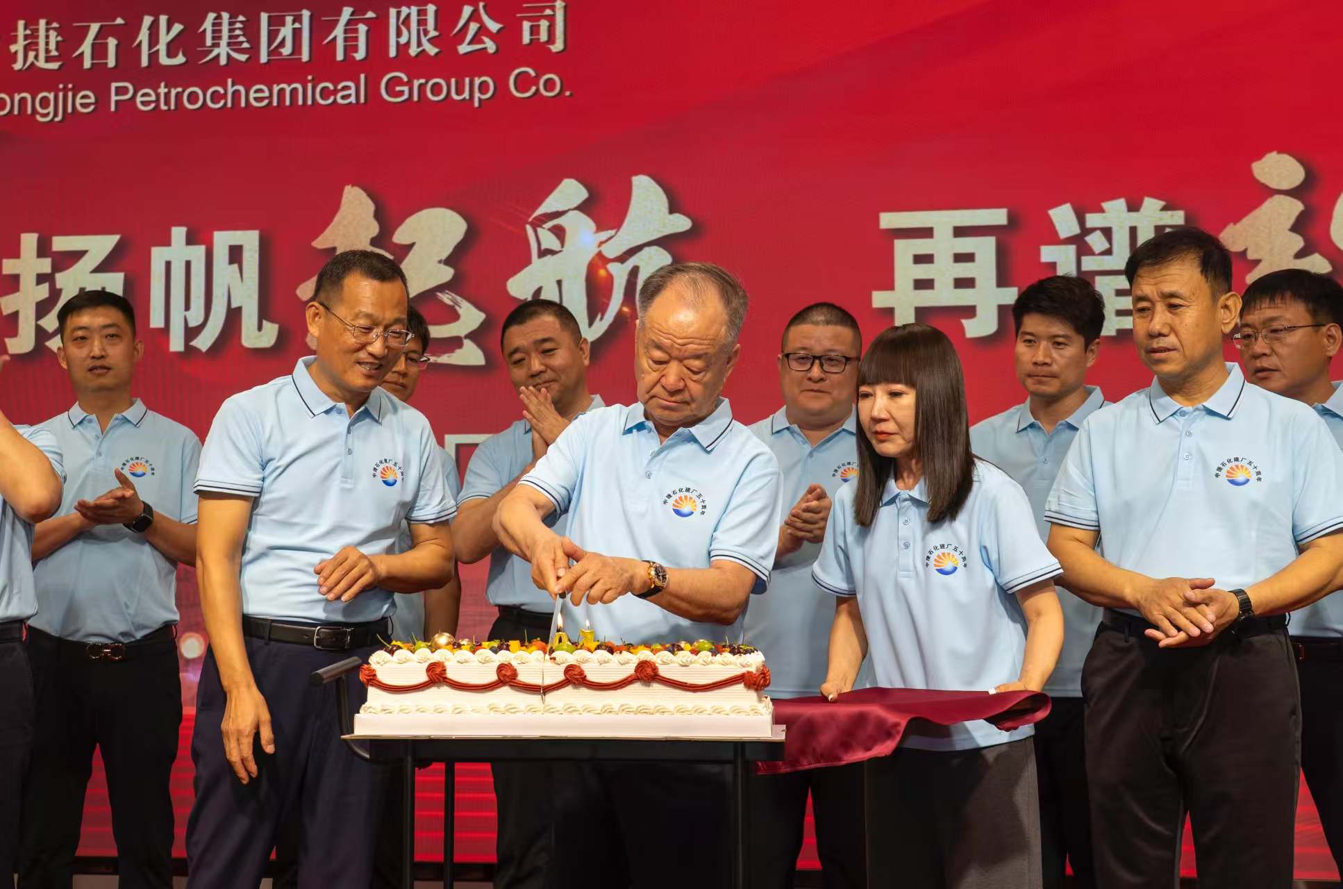 隨后,在溫馨而莊重的氛圍中,集團董事長王振華,黨委書記于國臣,總經(jīng)理喬樹華等集團公司領(lǐng)導,各所屬單位董事長、總經(jīng)理共同上臺,全場齊唱生日歌,為中捷石化50歲生日獻上最美好的祝福。