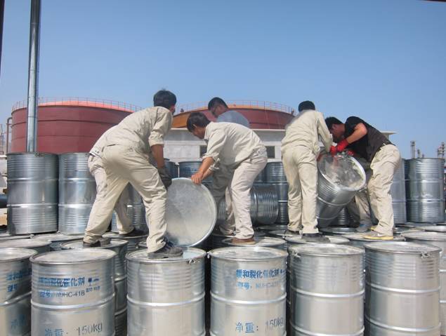 烈日炎炎,他們汗流浹背,沒有人喊累,他們喊著口號將一桶桶300斤的催化劑在尾氣回收平臺碼放整齊,為催化劑裝填工作提前做好準備,為反應器的正常運行打下基礎(chǔ),從而保證蒽油加氫裝置的成功開車。
